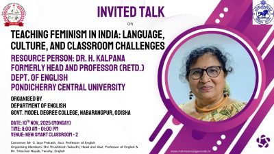 Last year (2025) on November 10, at the insistence of my student, Jaya Prakash, after the conference at Pattamundai, I travelled to Jeypore. Jaya Prakash is an assistant professor who teaches at the Government Model Degree College in Nabarangpur, Odisha. The college had invited me to speak on Teaching Feminism in India: Language, Culture and Classroom Challenges.